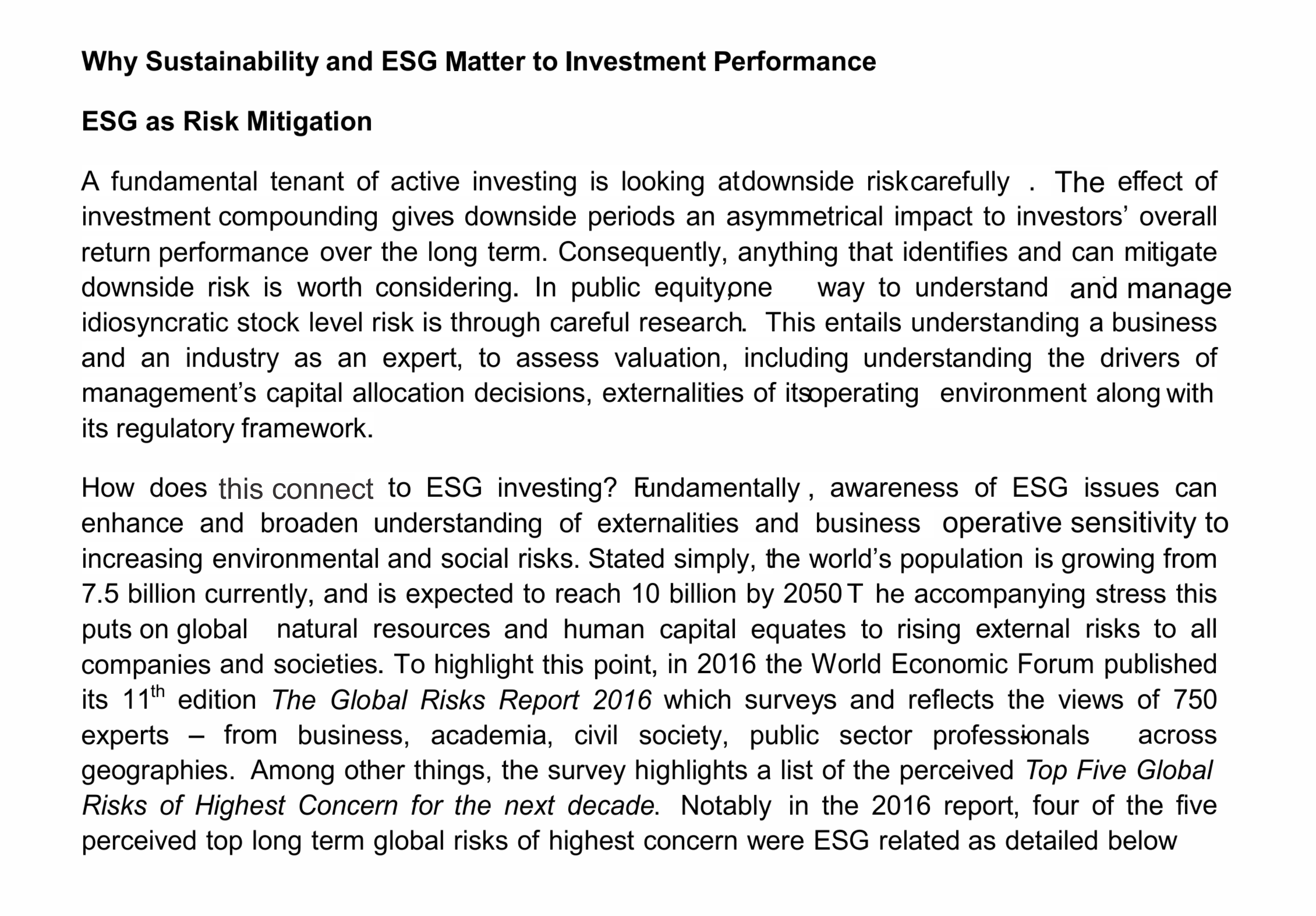 - Consideration of material ESG issues