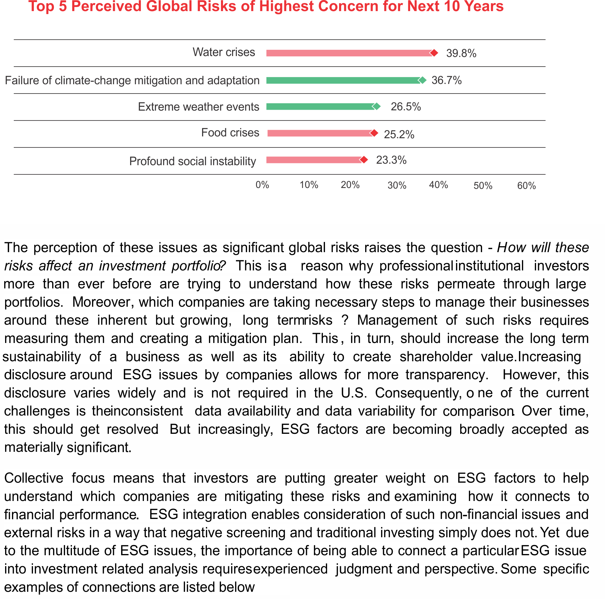 - Investor belief that ESG related information enhances investment decision making