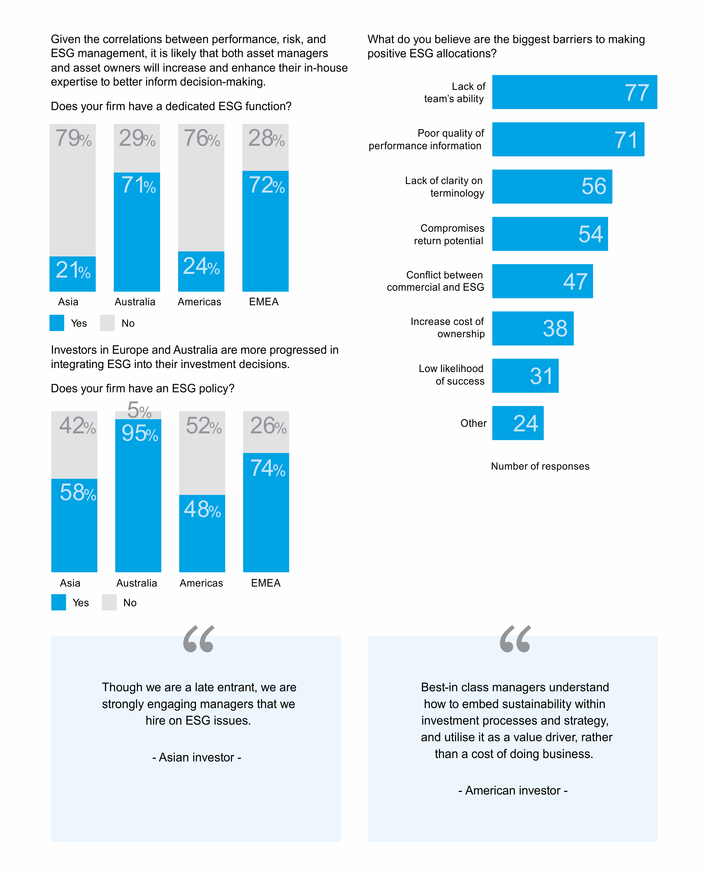 The benefits of integrating ESG factors into investment decision are increasingly clear, and feedback from 150 investors demonstrates the growing importance of ESG mandates in the future.